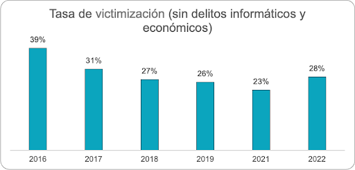 Fuente: Fuente: Elaboración en base a: Informe de Estadística Criminal 2022. Ciudad Autónoma de Buenos Aires. Años 2016 a 2022. Informe complementario al Mapa del Delito. Capítulo 6 Encuesta de Victimización. Ministerio de Justicia y Seguridad. Subsecretaría de Seguridad Comunal e Investigación Criminal.